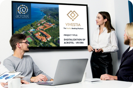 During this stage, Vivestia scheduled a meeting with Acrotel's Management Team to propose the idea of creating a Virtual Reality Tour for their hotels and villas in Halkidiki. Vivestia showcased their expertise and successful projects, highlighting the potential benefits of implementing the Virtual Reality Tour. The meeting focused on discussing objectives, requirements, and expectations from Acrotel's Management Team.